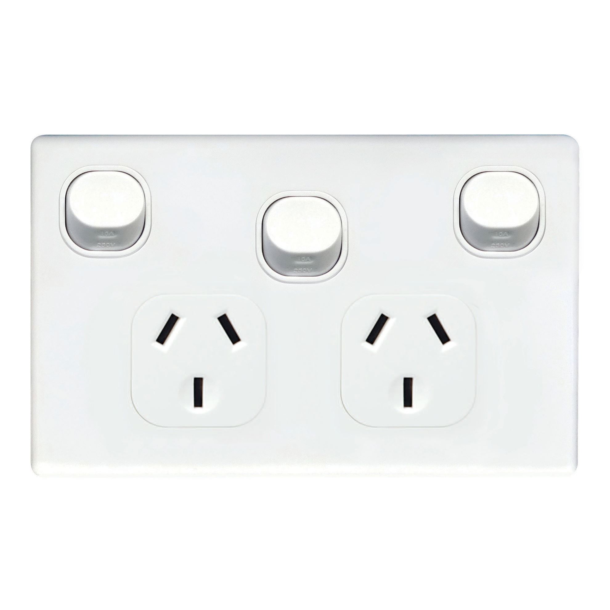 Slim 10A Double Power Point w/ Extra 16A Switch. Removable Cover