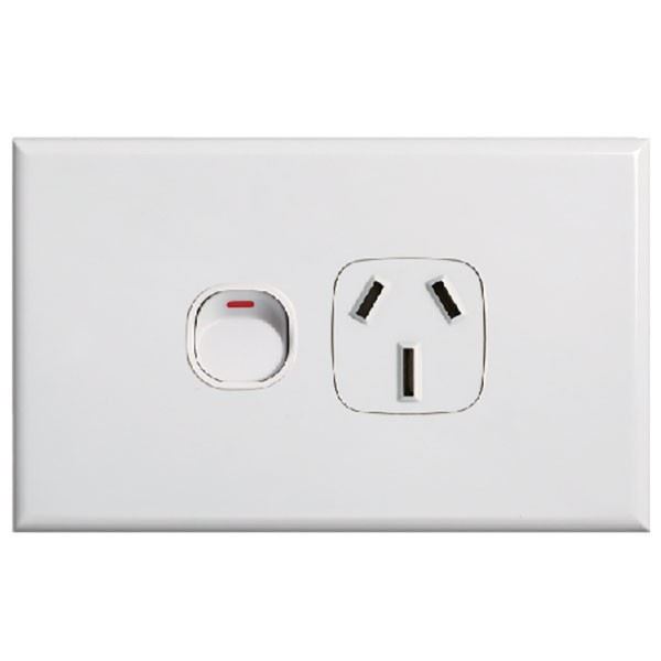 Slim 10A Single Horizontal Power Point. Remove Cover Moulded in Flame Resist
