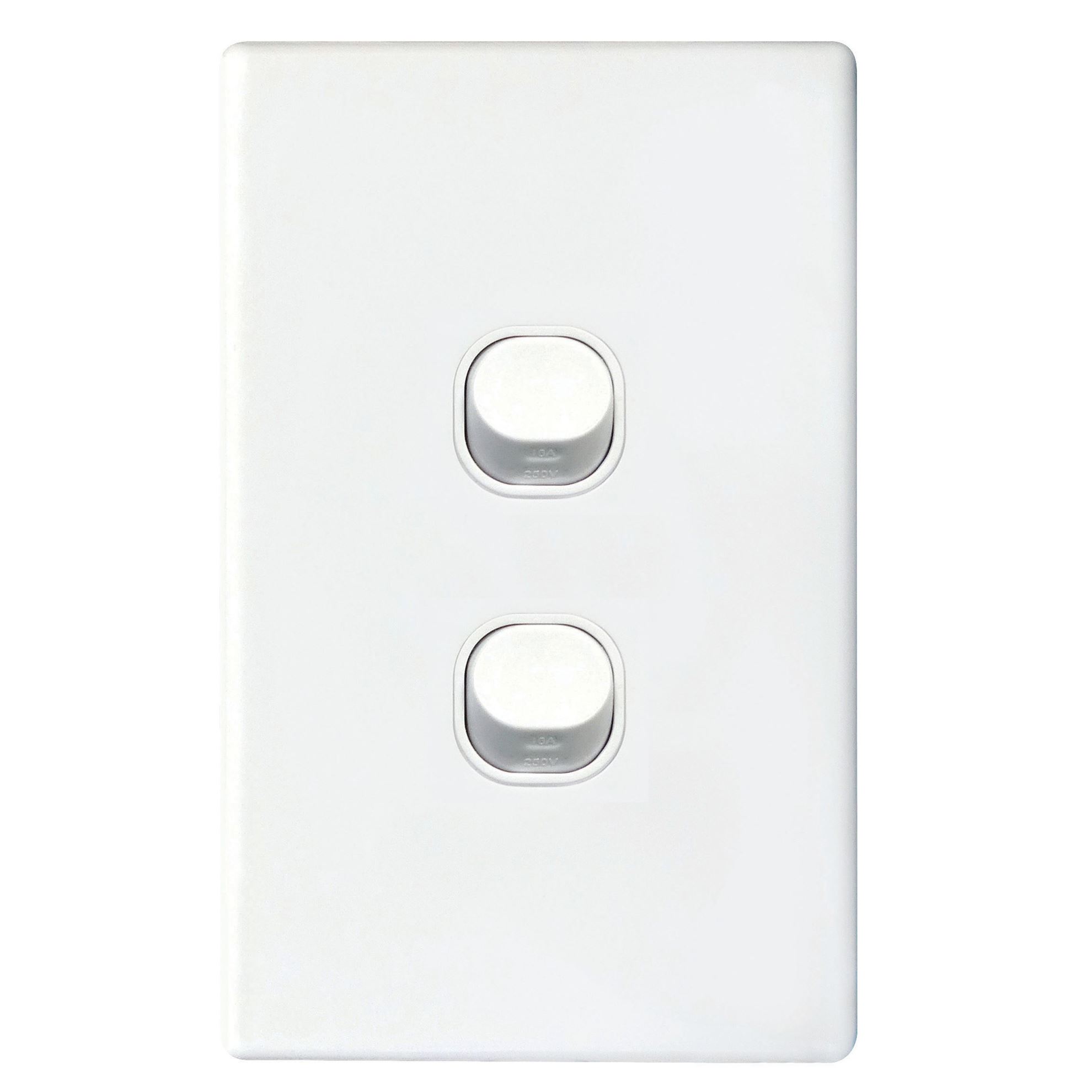Slim 16A 2-Way Vertical 2 Gang Switch. Moulded in Flame Resistant Polycarbonate. Fade