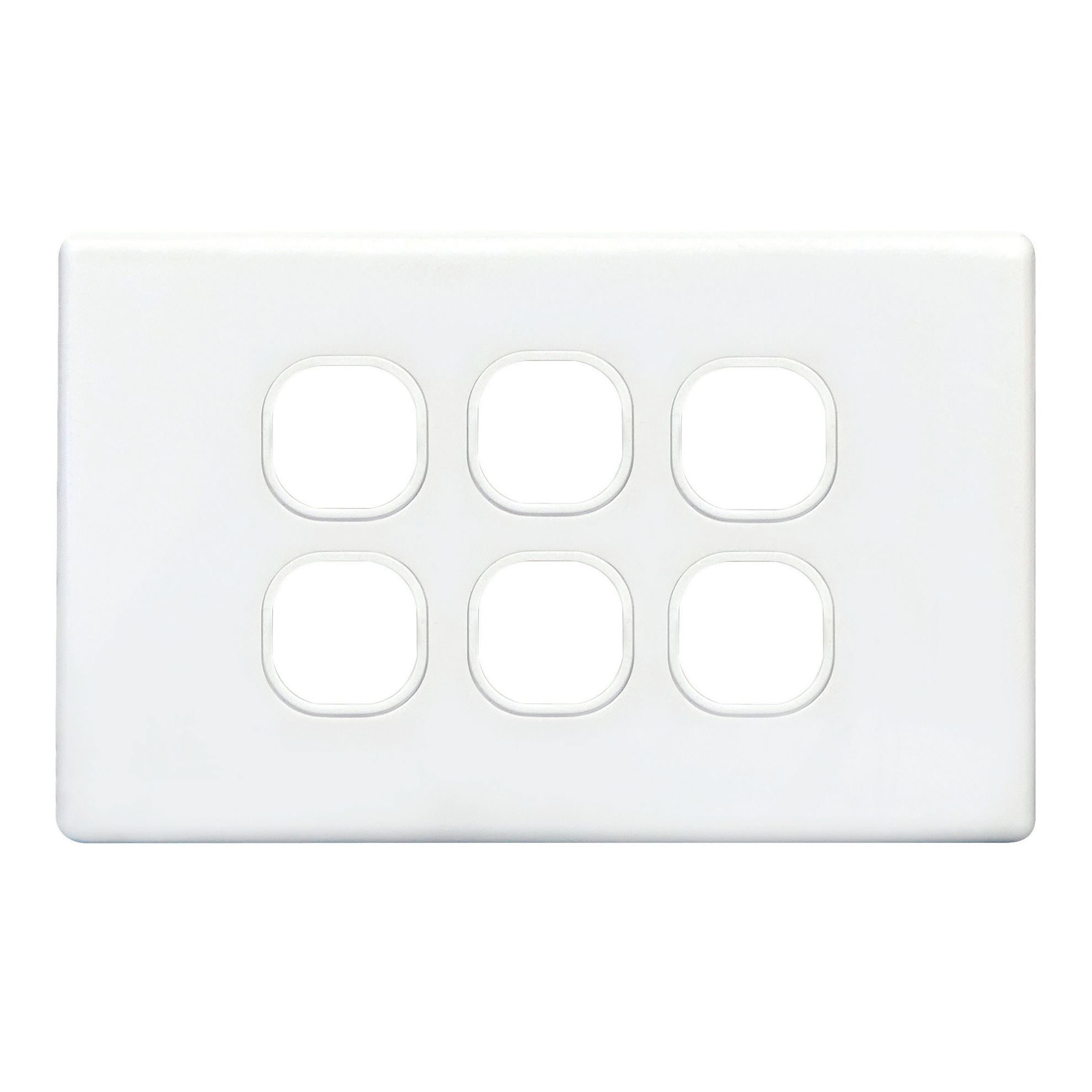 Slim Switch Plate ONLY. 6 Gang. Accepts all Tradesave Mechanisms. Moulded in Flame