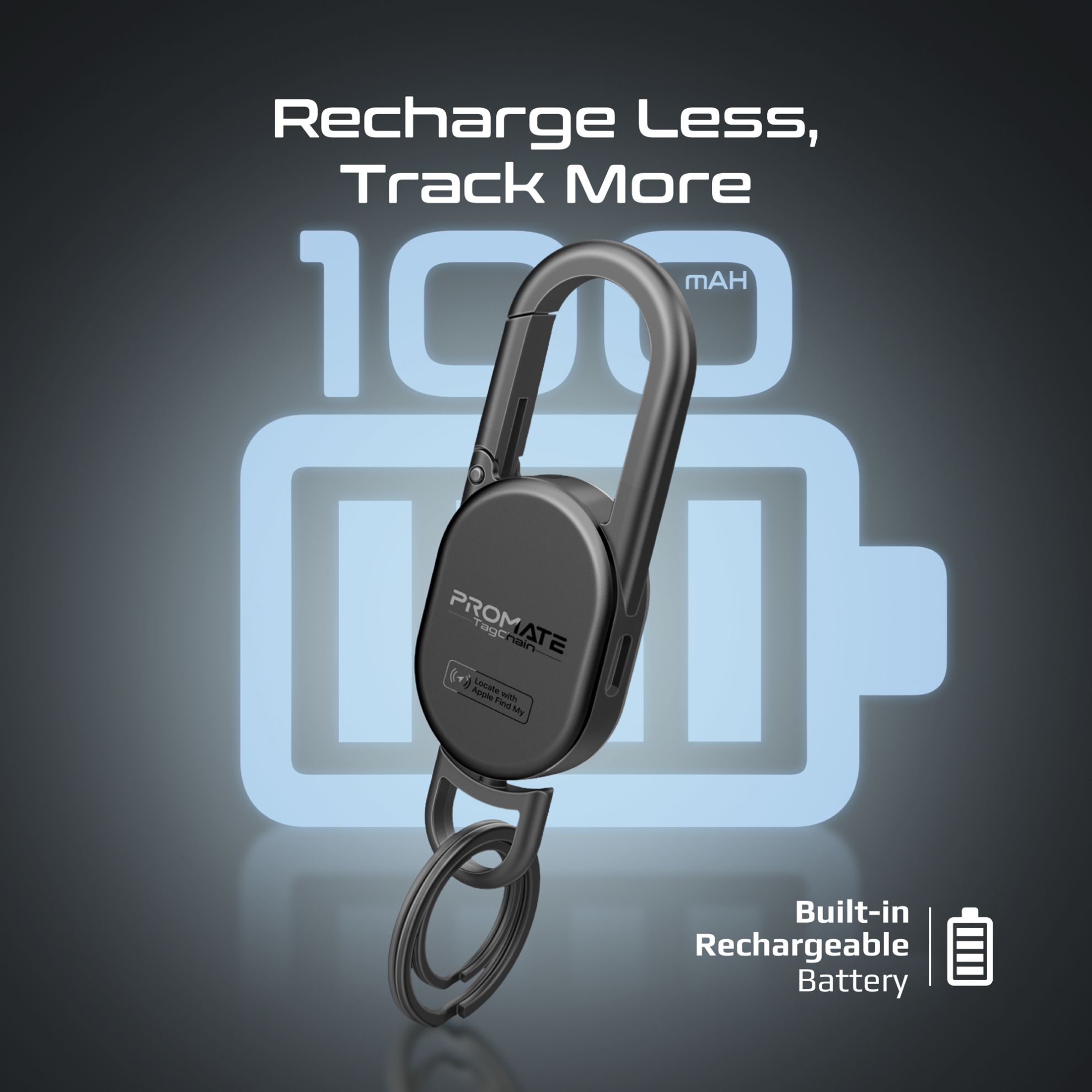 Smart Carabiner Keychain with Apple Find my Location. Rechargable Battery Precise