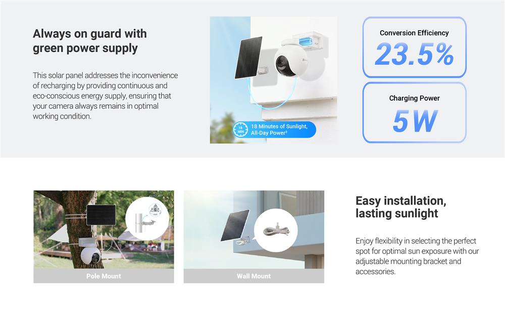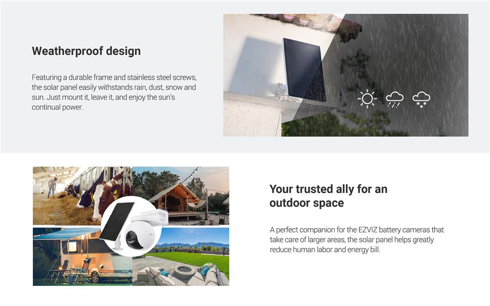 Solar Charging USB-C 6W Panel for Battery-Operated Cameras Weather Proof IP65 Delivers up