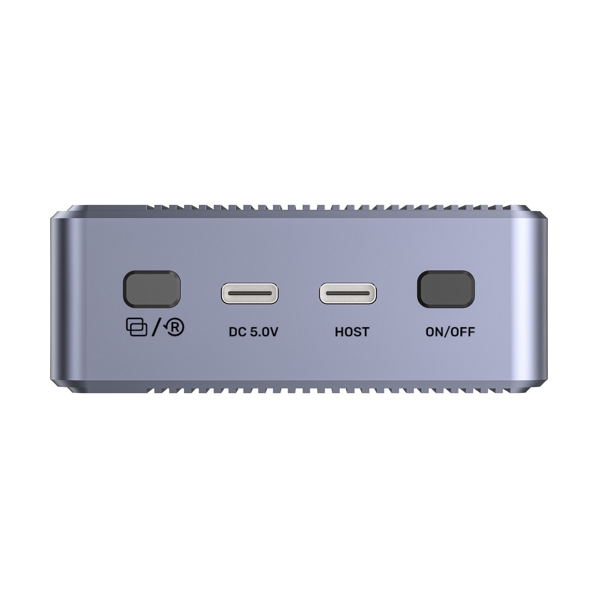 - LED light status: 1x Green LED: Power On/Off; 2x Yellow LEDs: Correspond to A or B M.2 SSD slots; 4x Blue LEDs: Indicate 4 different RAID configurations, with cloning progress lit sequentially from 25%, 50%, 75%, and 100%.