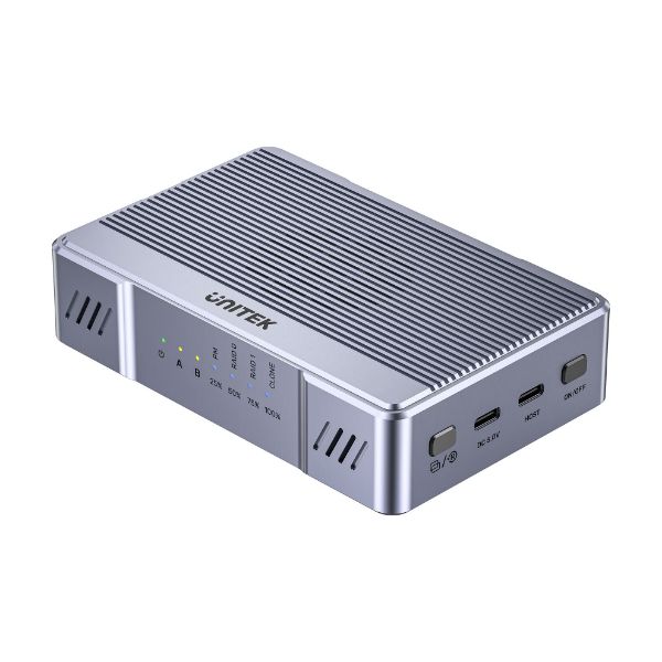 UNITEK SolidForce 20Gbps Dual Bay RAID M.2 SSD Enclosure is not only a dual M.2 SSD enclosure but also supports RAID features with simple mode settings. One-button control enables seamless SSD duplication without a PC or laptop connection. It is an ideal choice for personal storage at home and in the office.