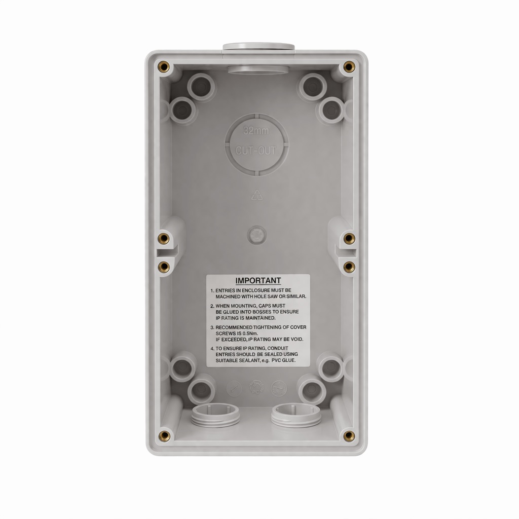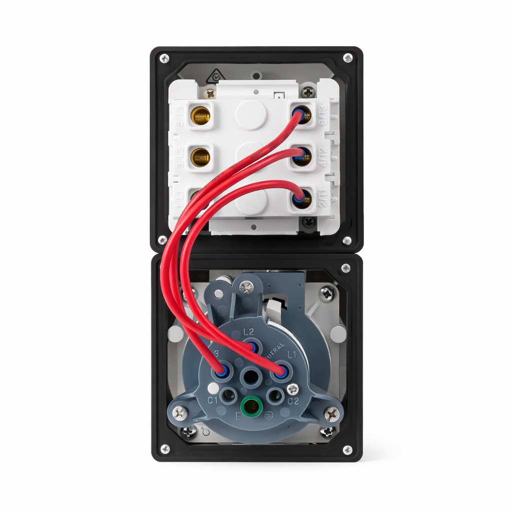 TRADESAVE Switched Outlet 4 Pin 10A Round, IP66 Stainless Steel cover fastening. Heavy Duty Includes Base