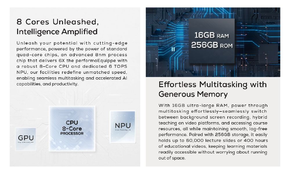 - Peak Performance: Octa-core CPU, Independent NPU, 16GB RAM, 256GB ROM