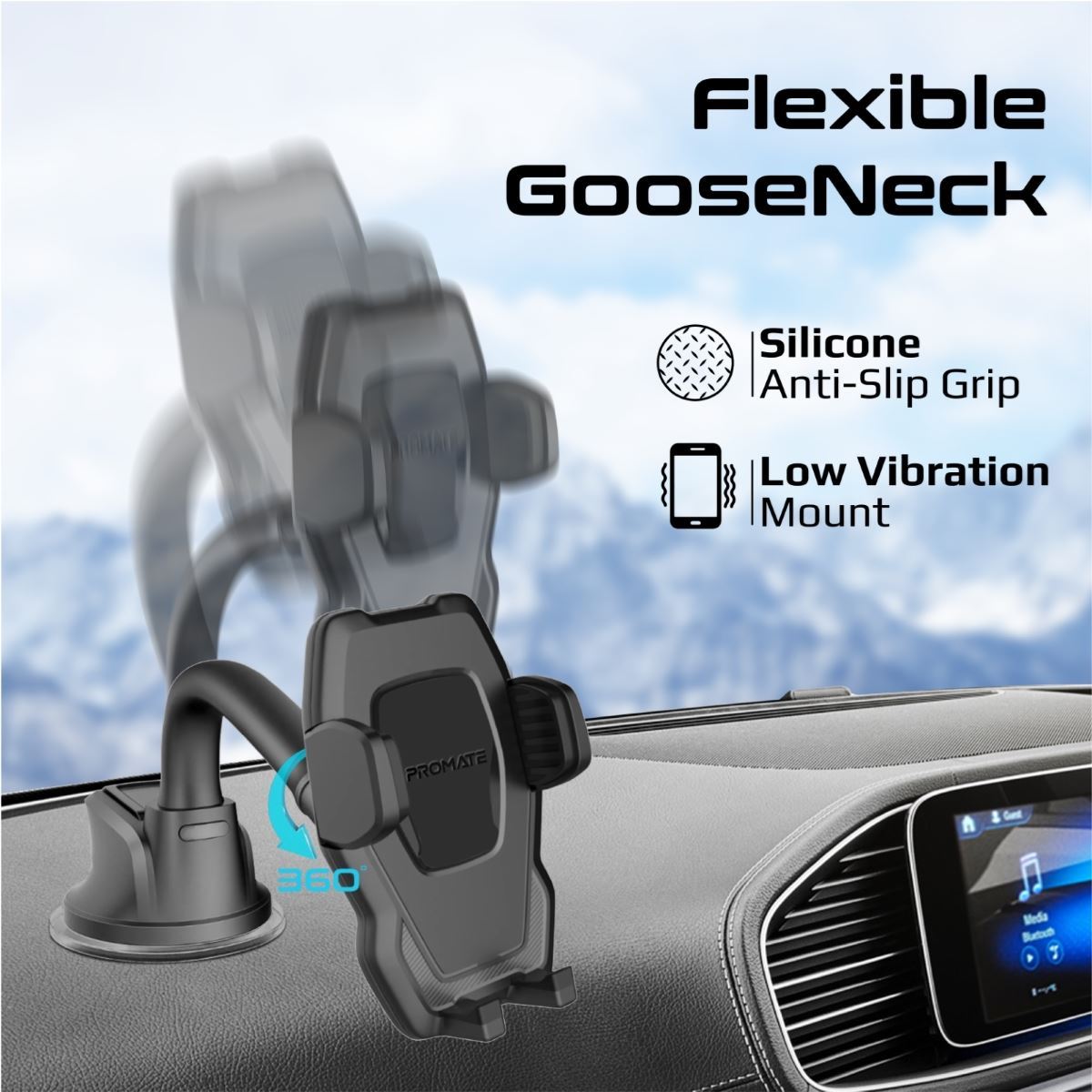 Dashmount provides you with flexible, adjustable viewing, whether horizontal, vertical or at any angle. The suction cup is more robust than ordinary suction holders and adopts a two-step locking mechanism. The gooseneck design allows you to adjust this mount freely