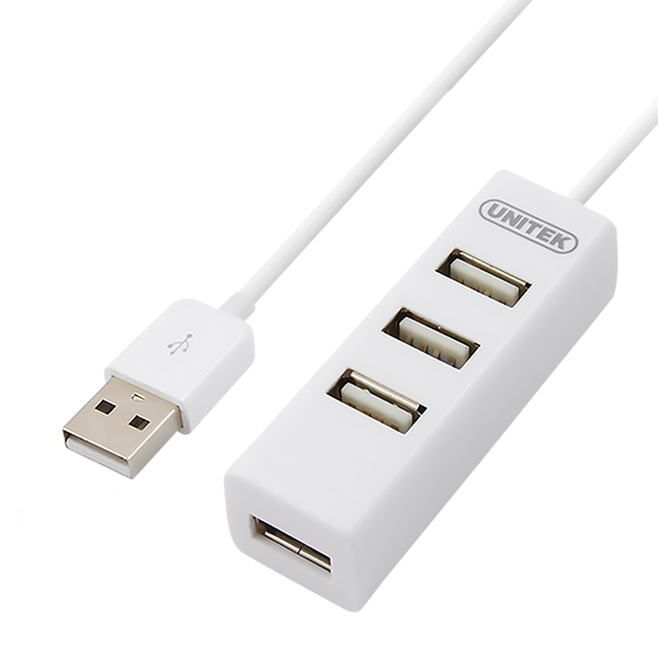 USB-A 2.0 4-Port Hub. Plug & play. Backward compatible w/ USB1.1. Supports data transfer
