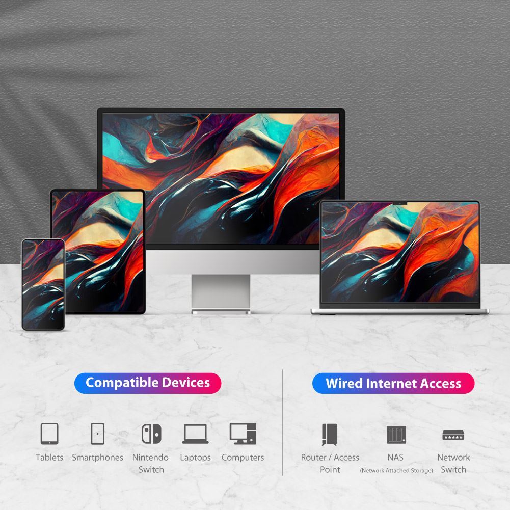 • Wide Device and OS Compatibility: Supports various laptops, computers, tablets, smartphones and the Nintendo Switch