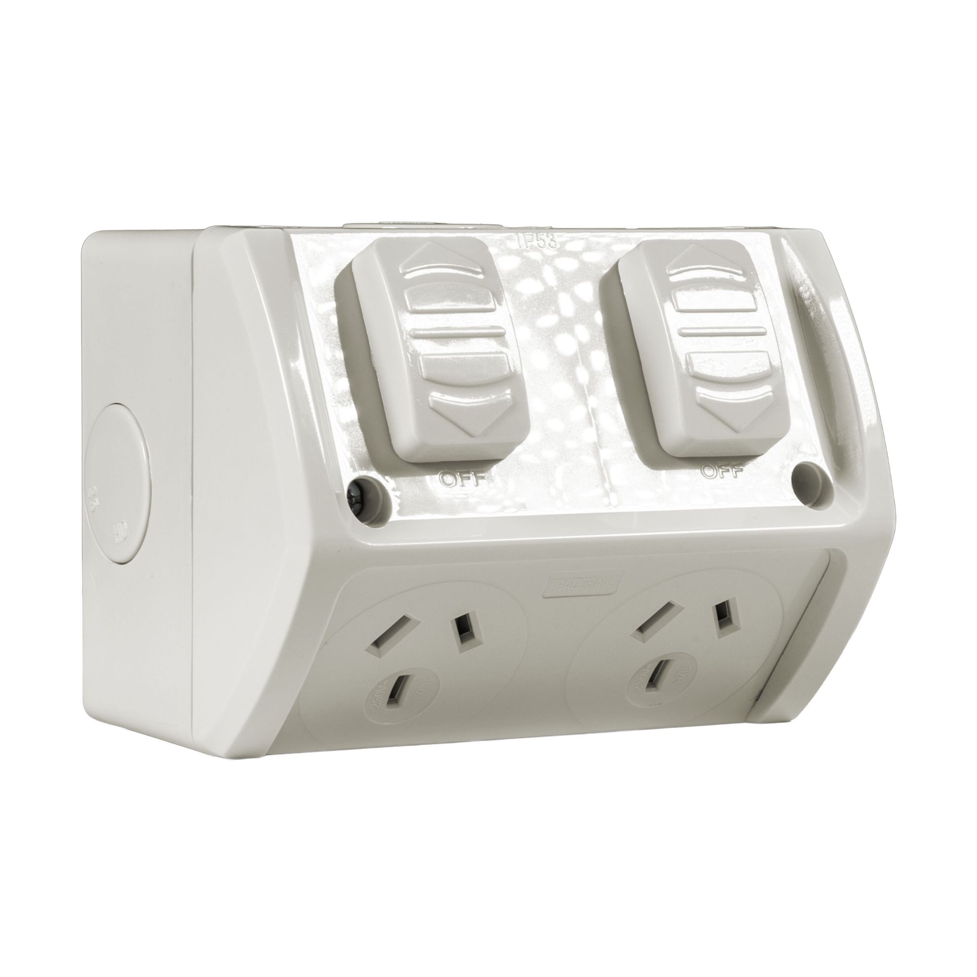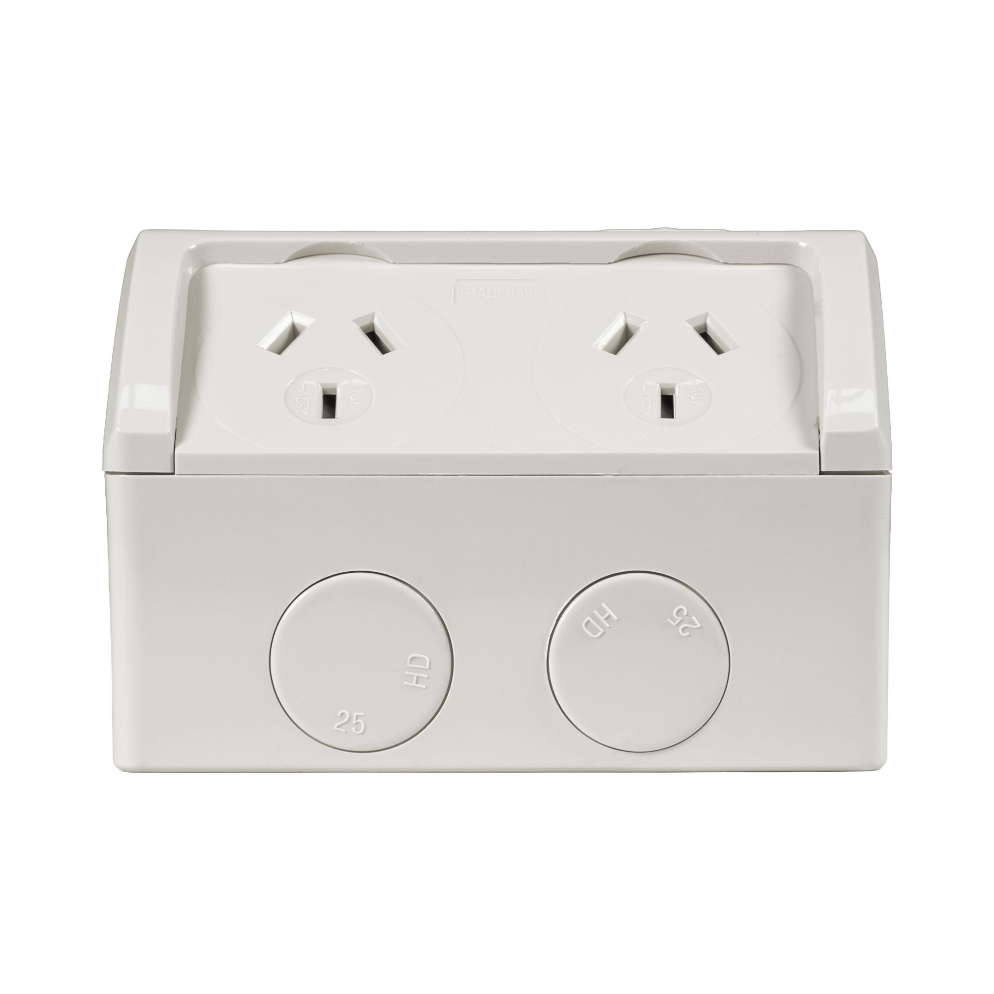 Weatherproof Double IP53 Outlet. Grey Heavy Duty 10A Single Connection